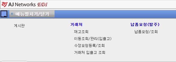 아주파렛트는 AJ Networks EDI라는 전산을 이용합니다.